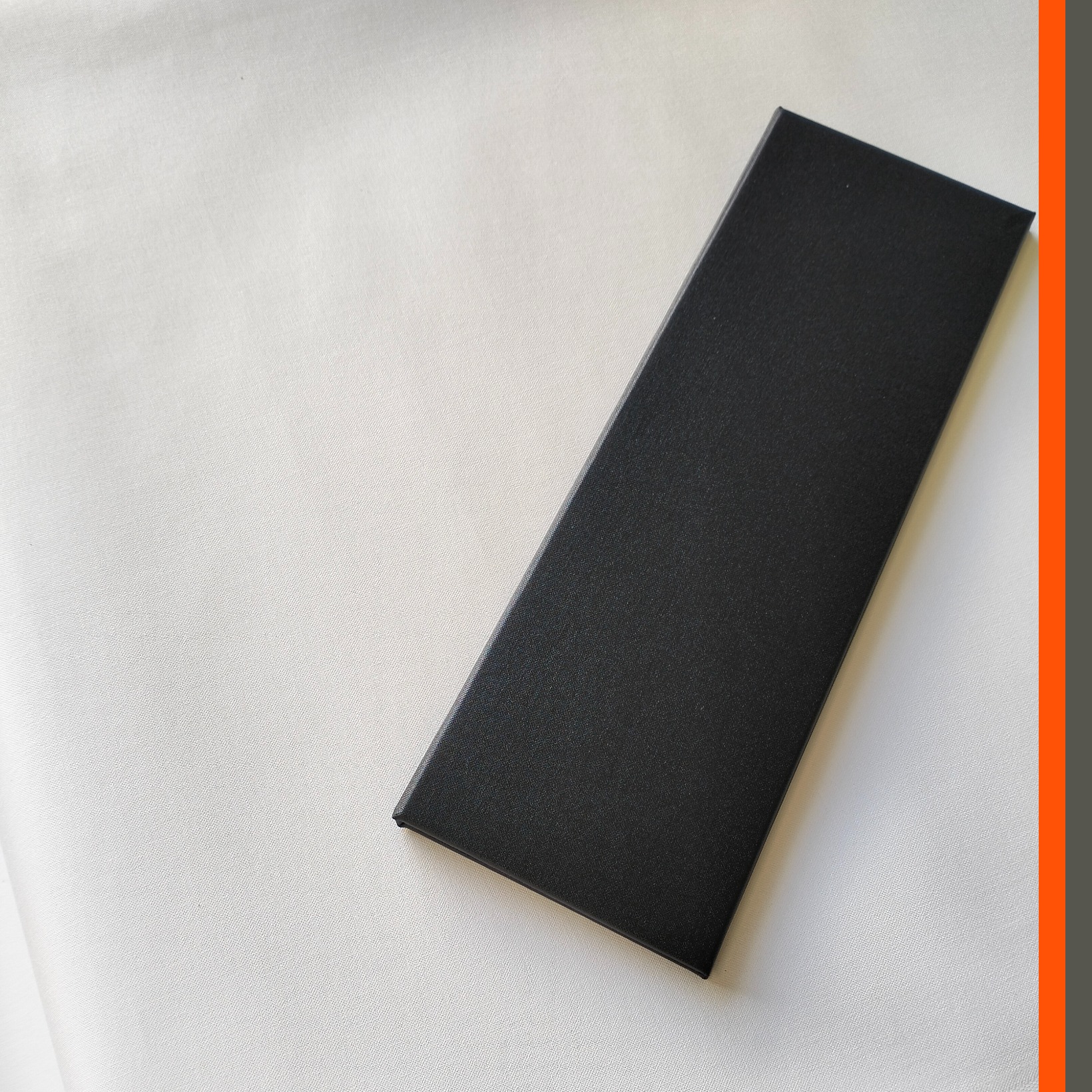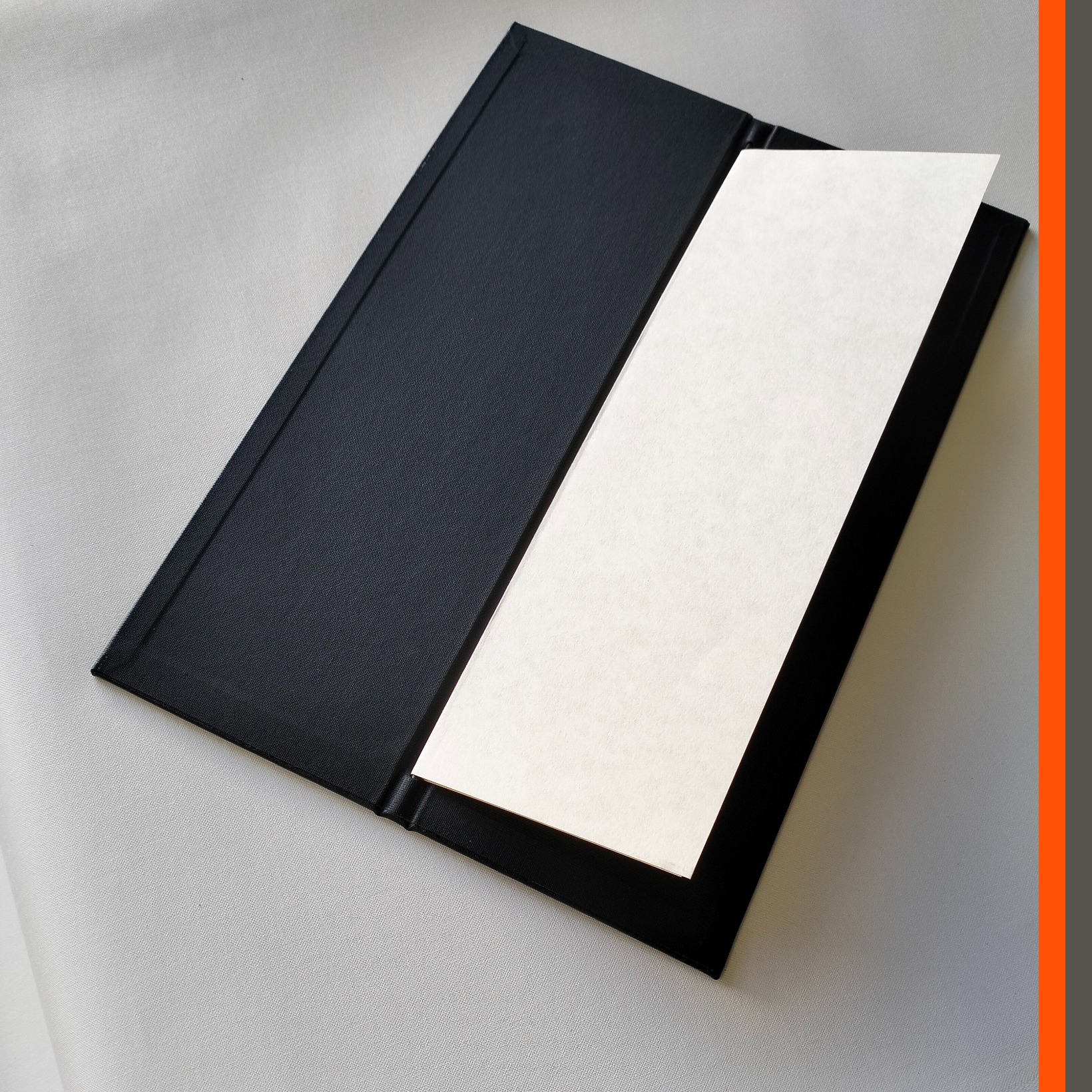 - binding: carbon fibre rod binding for A4 sheets folded to 105x297mm portrait menu presentation