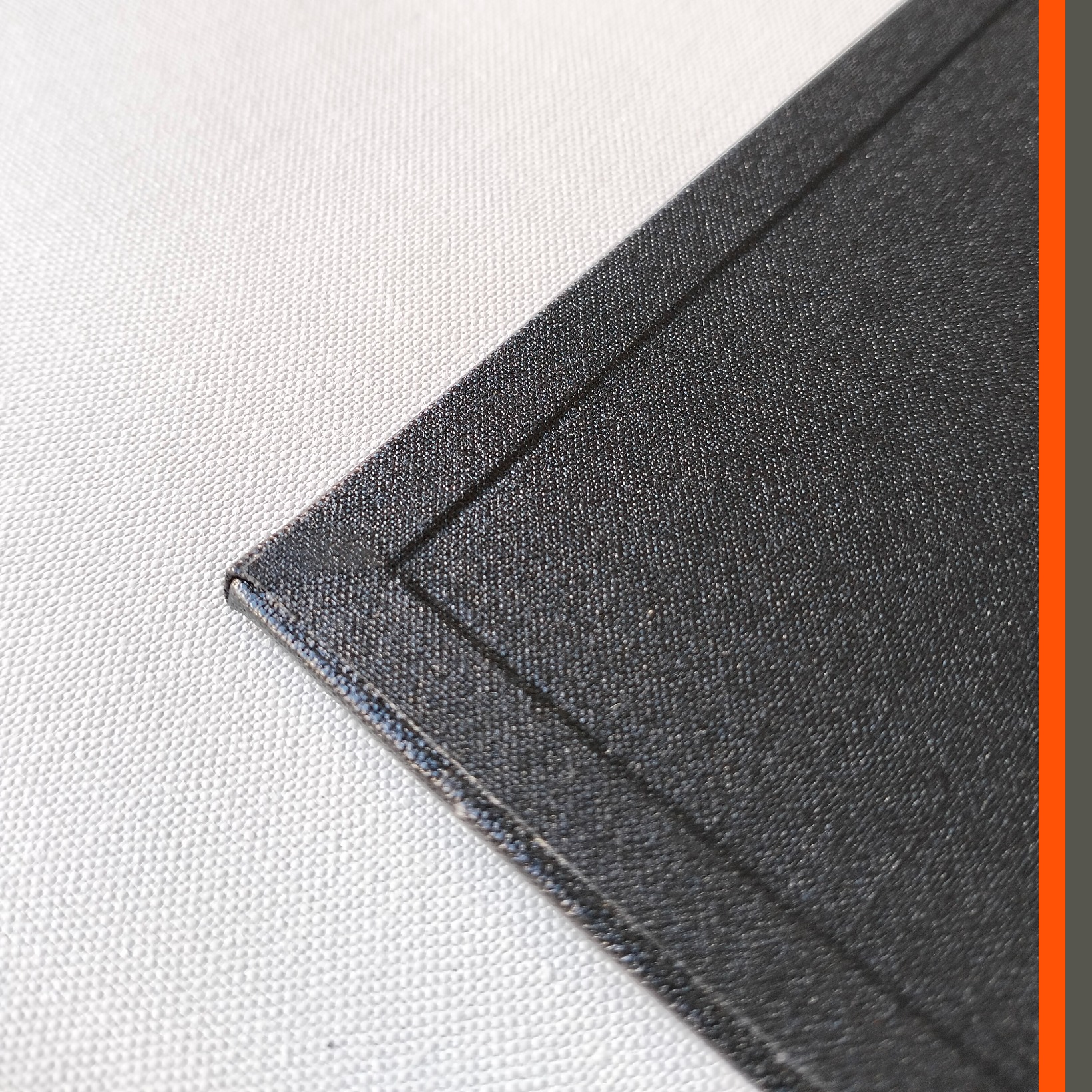- materials: buckram outer textile & chelsea cloth inner textile bonded over 3mm thick board panels