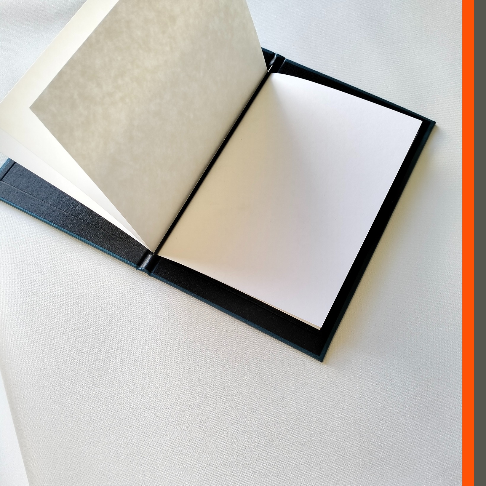 - binding: carbon fibre rod binding for A4 sheets folded to A5 portrait menu presentation