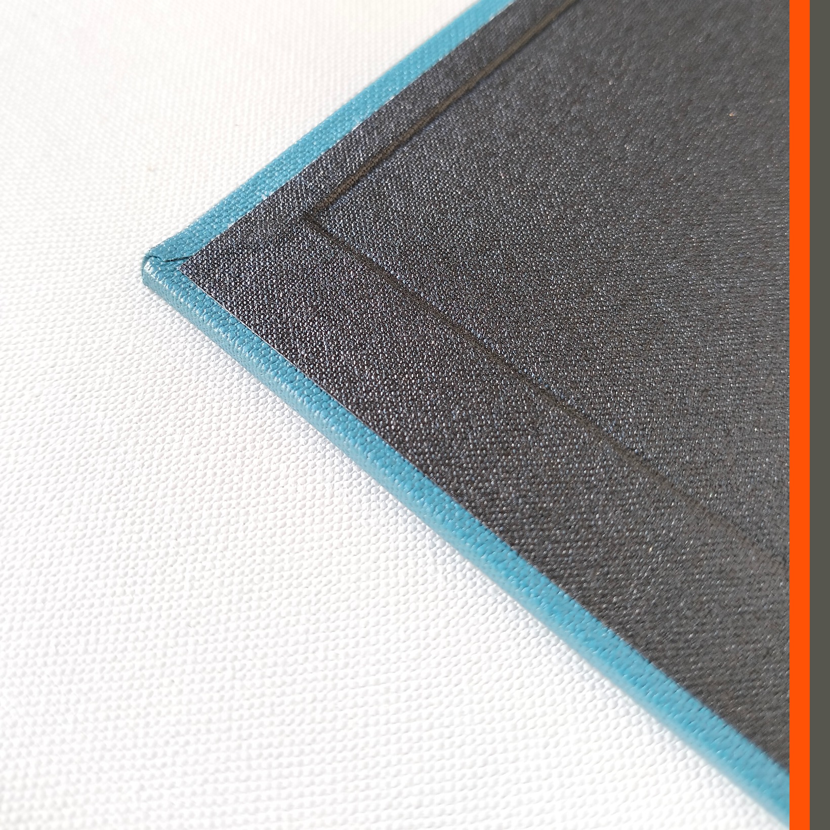 - materials: buckram outer textile & chelsea cloth inner textile bonded over 3mm thick board panels