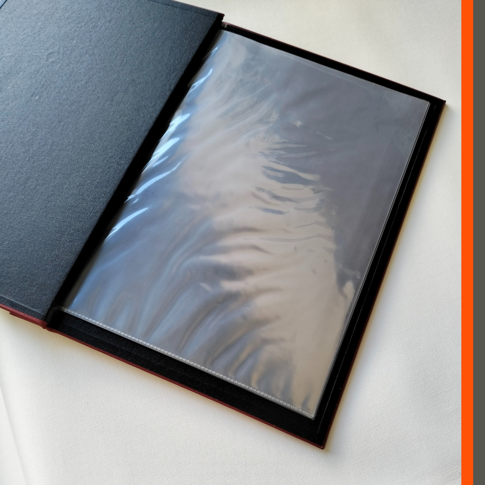 MBANĀ Need a few menus just for your range of top end wines. These work fine with or without the plastic sleeves. Heaps of capacity where you have one page per selection. Room for provenance & picture of vineyard.