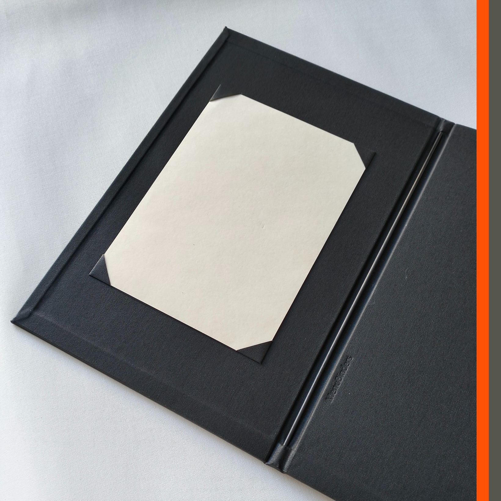 - binding: carbon fibre rod binding for A3 sheets folded to A4 portrait menu presentation