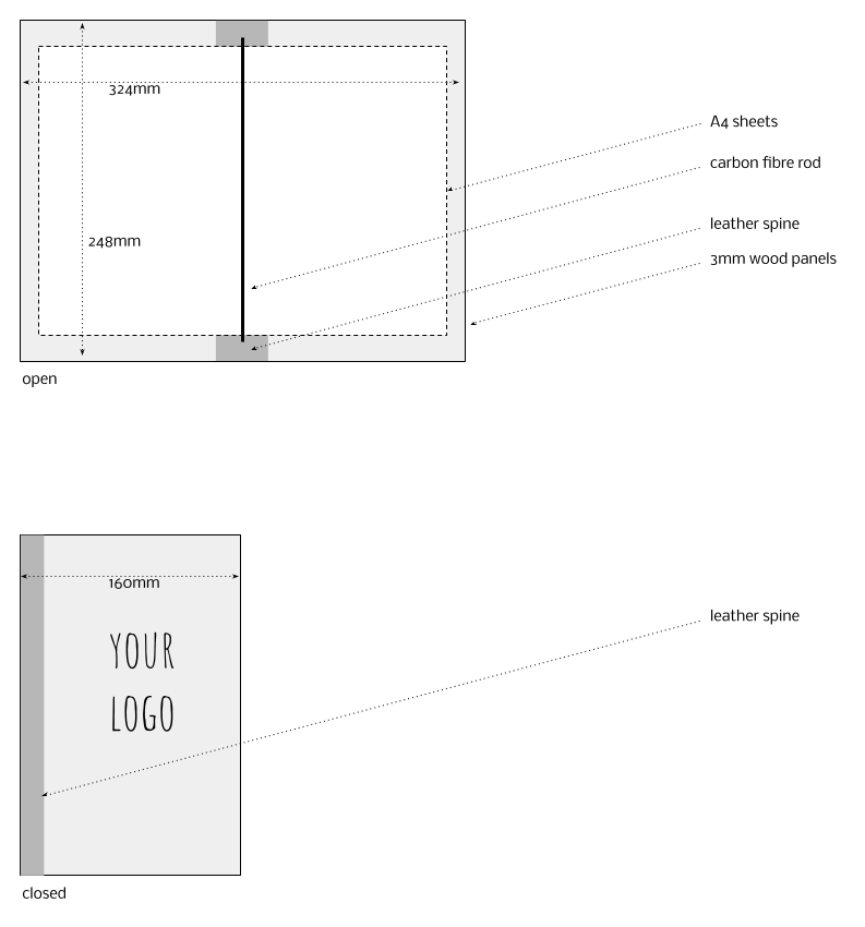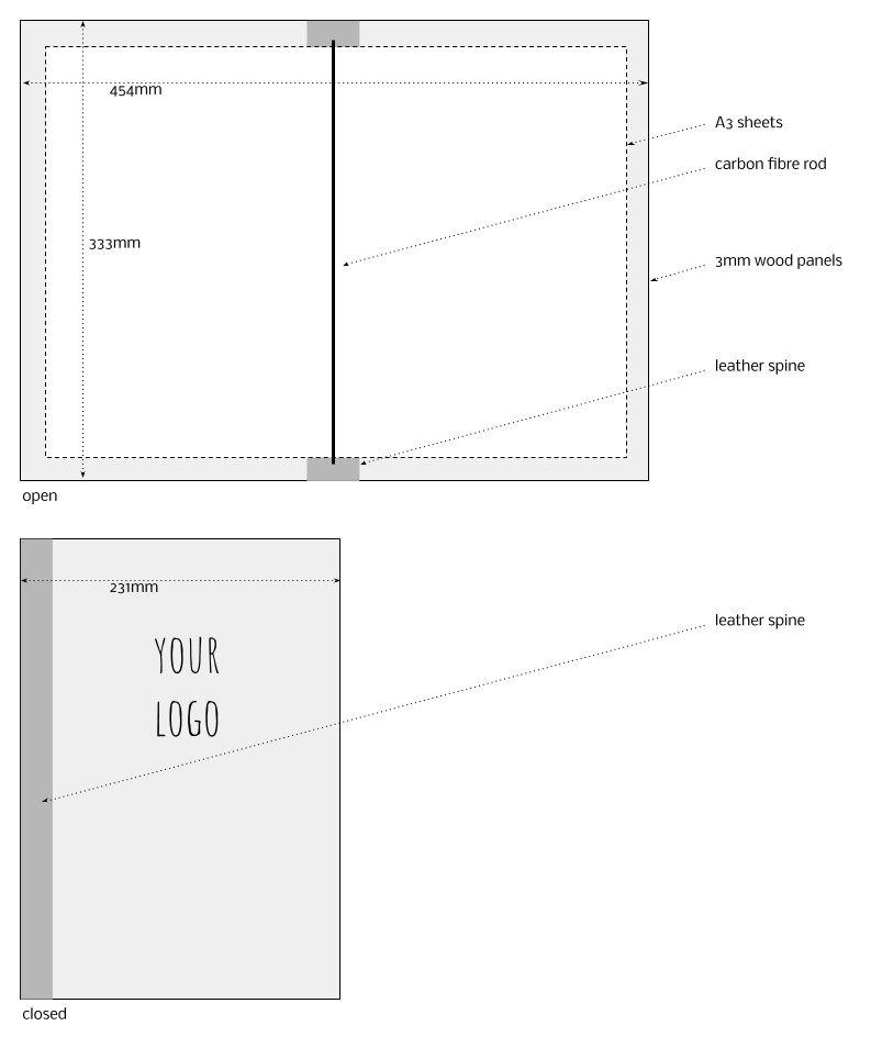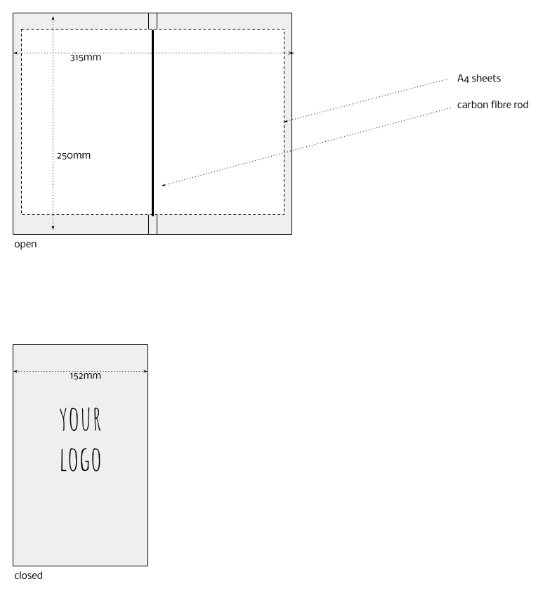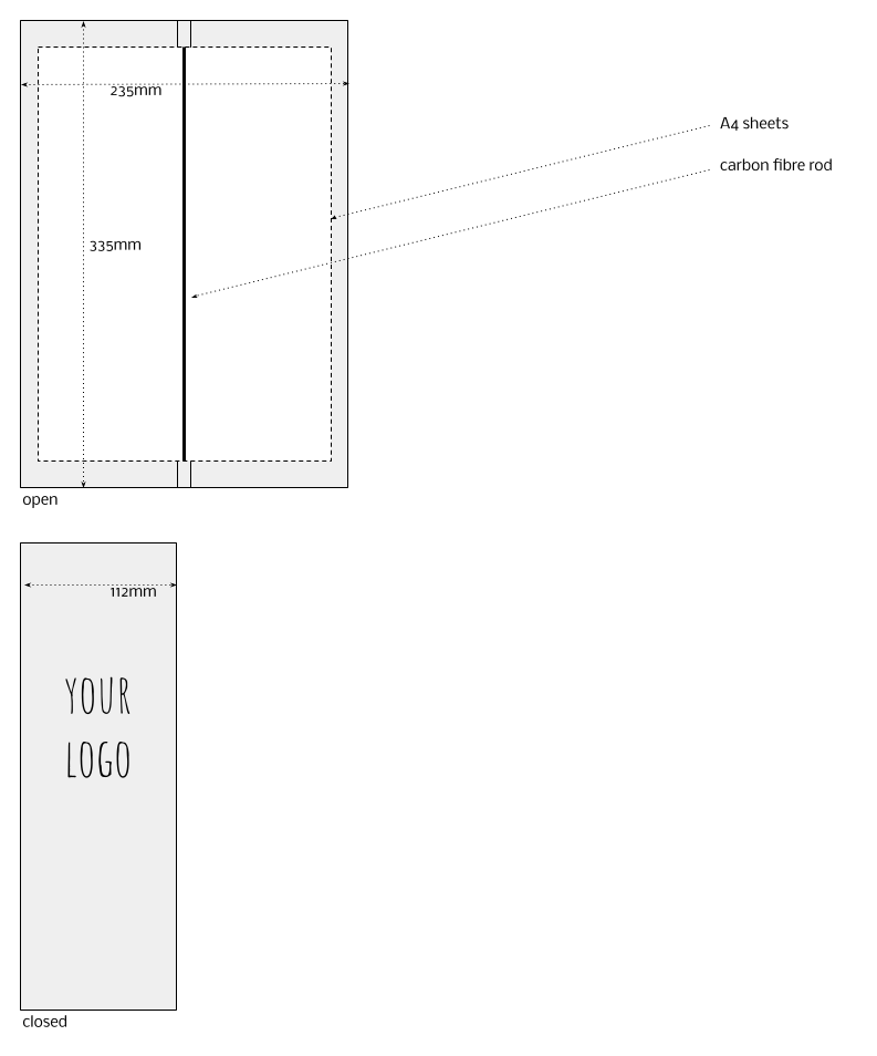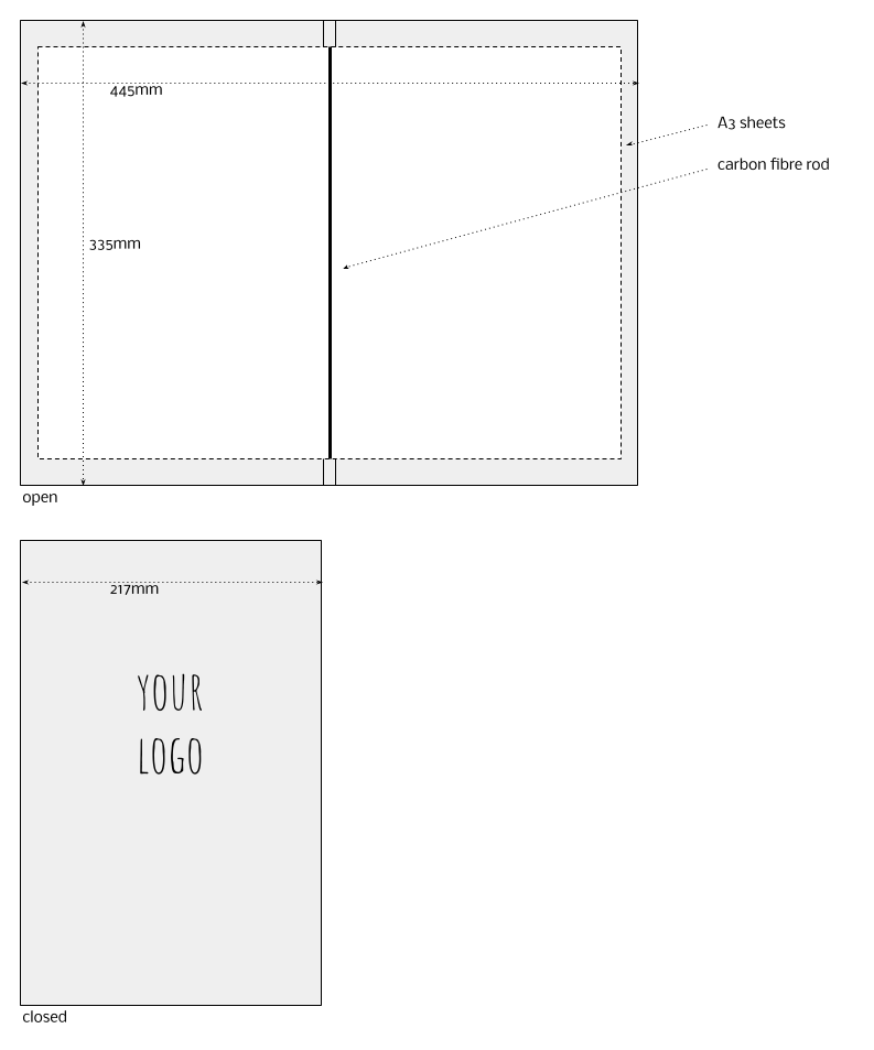 Holds A3 sheets, printed both sides & folded for A4 portrait menu presentation.