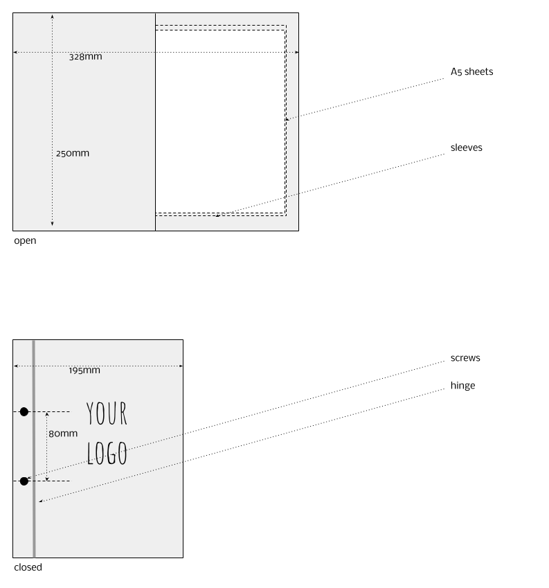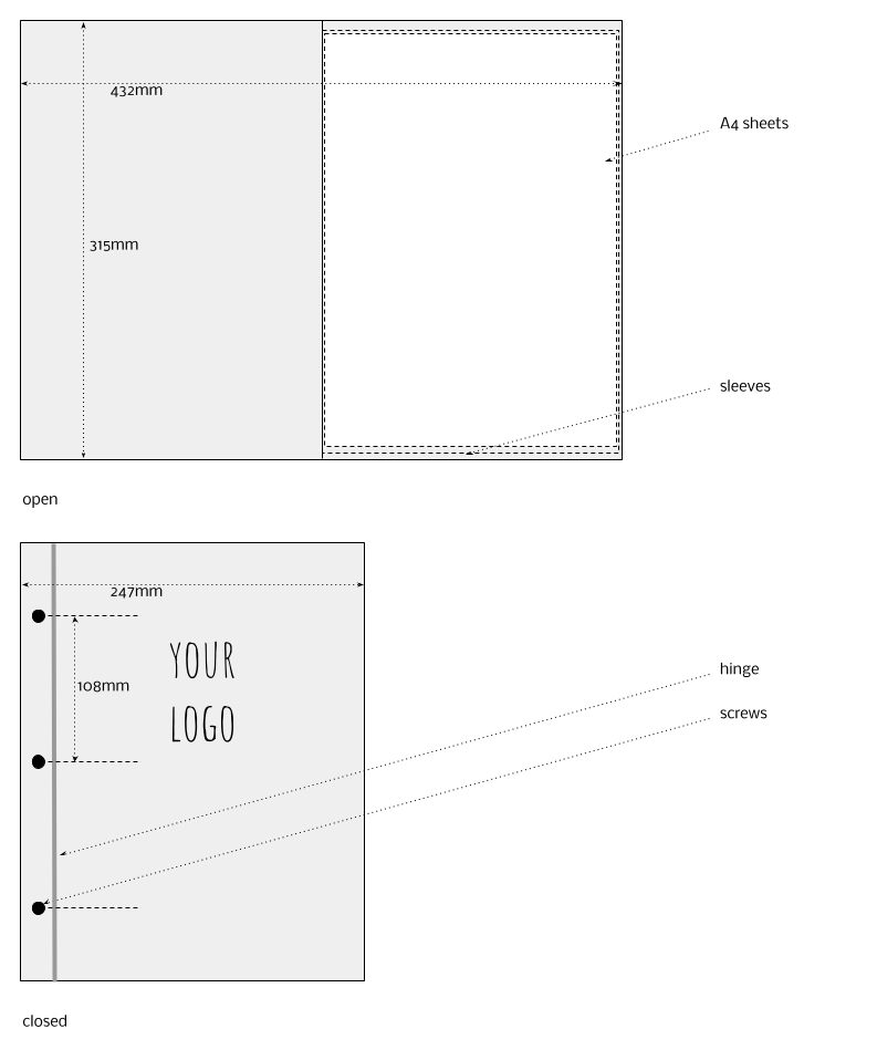 Holds A4 sheets, printed both sides for A4 portrait menu presentation with or without plastic sleeves.